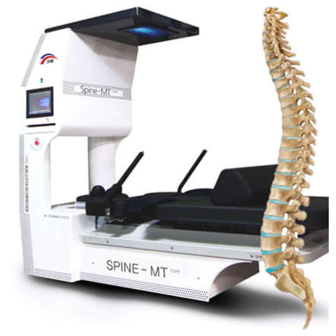 Experience the first-of-its-kind, advanced Spine MT Core machine, designed to map your spine and deliver a precise, personalised treatment. Using intelligent technology, it automatically mobilises and rotates your spine to enhance flexibility and restore natural movement. Following this, it gently stretches the spine in controlled cycles, creating space between the vertebrae to relieve pressure on discs and nerves. This process promotes natural healing, reduces pain and restores function—all without surgery or medication.